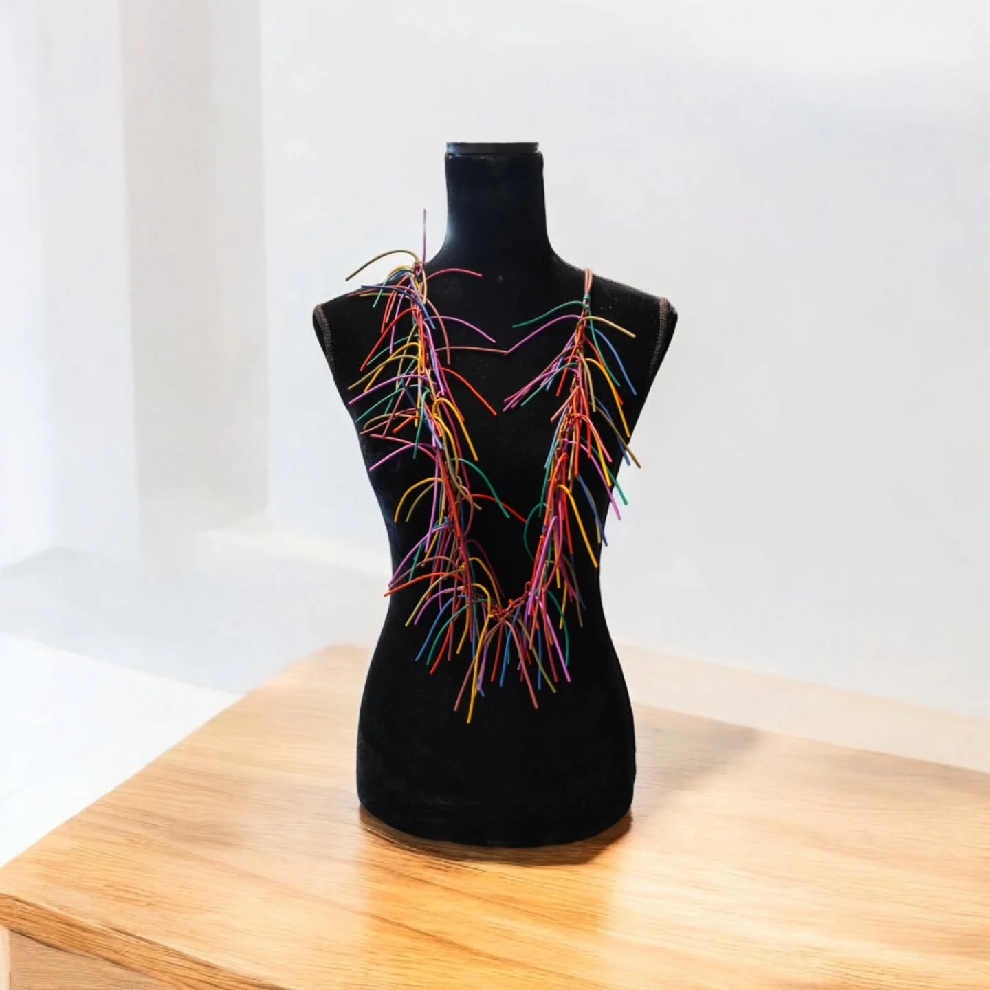 Collar largo de nudos de goma en multicolor. Es tan ligero como original. Perfecto para resaltar cualquier outfit.